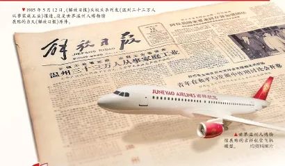 ◆1985年5月12日,《解放日报》头版头条刊发《温州三十三万人从事家庭工业》报道。这是世界温州人博物馆展陈的当天《解放日报》原件。世界温州人博物馆展陈的吉祥航空飞机模型。均资料照片