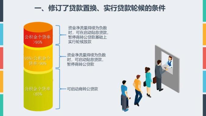 ●住房公积金个人住房贷款率在95%以上,资金净流量持续为负数的,在启动贴息贷款、暂停商转公贷款的基础上,实行轮候放款。”