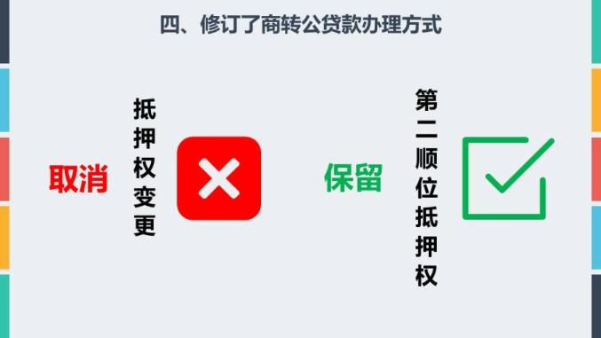 《贷款置换暂行办法》规定,办理商转公贷款可使用抵押权变更登记或第二顺位抵押权登记。但实际操作中没有商业银行使用抵押权变更方式,因此《贷款置换办法》删除了相关内容,只保留第二顺位抵押的方式。