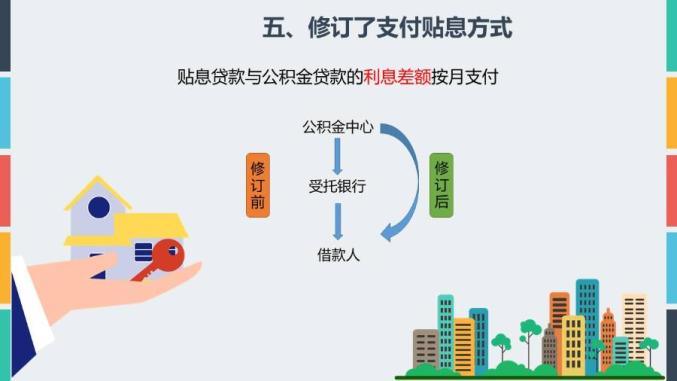 因此《贷款置换办法》第三条修改为:“……贴息贷款与公积金贷款的利息差额由江门市住房公积金管理中心(以下简称公积金中心)按月支付给借款人。”、第二十二条修改为:“……(六)贷款贴息。公积金中心按月将贴息金额支付给借款人。”