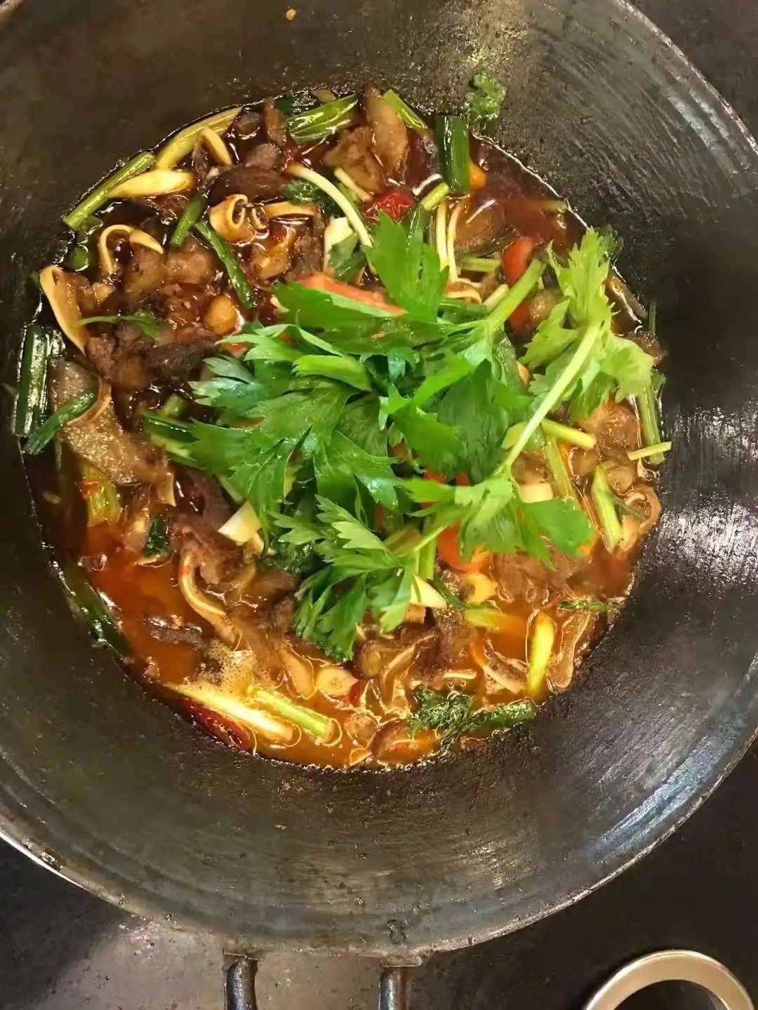 刚进店门口,肉香扑鼻而来,我看到一个师傅正站在门口,熟练地翻炒着一锅肉片和排骨。地摊火锅的灵魂在底料,用豆鼓和糊辣椒面混炒出香味,加少许水,炒至豆鼓和辣椒混合出香味后加少许水就成,加入肉片和排骨翻炒,上锅后注入高汤,再依次放入蔬菜煮熟,热腾腾的火锅充满着人情味。