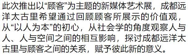 成都远洋太古里自开业以来一直吸引着来自全国各地及国际人士的关注,并受到尤其是Z世代年轻人群的热烈喜爱。它秉承“以人为本”的理念,将商业创新探索、多元化艺术、前沿文化思想呈现于一方天地,为顾客营造了一个具有精神价值的对话场所。徜徉其间的顾客,用各自独特的自我表达自然而然融入这个场所,举手投足间释放个性主张,闲庭信步中汲取心灵养料,成为了塑造和成就成都远洋太古里场所价值的重要一环。这群代表中国当下更年轻一代消费群体的顾客们,有着鲜明的生活态度,对新鲜事物充满好奇,敢于大胆尝试;他们热爱时尚和潮流,拥有独立的审美,注重个人形象塑造,以开放的态度推动着成都时尚生活方式的演进;他们充满活力,以根植于本土文化的“快耍慢活”的节奏和心态,自信地拥抱新的文化,形成与众不同又多元万千的自我风格。在这六年中,成都远洋太古里这个场所与在这里的每一位顾客密切互动,相辅相成,相互影响,相互成就,淋漓尽致地诠释了“空间因人而设,人为空间赋予精神”的内涵。