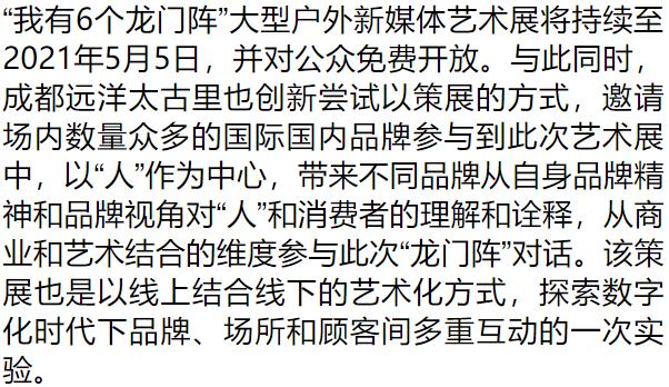 原标题:《“我有6个龙门阵”成都远洋太古里六周年庆正式开启》