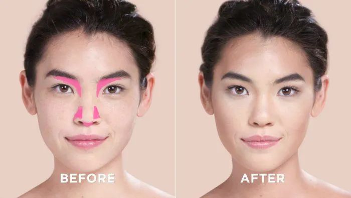 脸大颧骨凸其实很多时候巧用发型遮一遮就可以解决,但是鼻子暴露在脸部正中,无遮无挡,鼻影就非常重要了。
