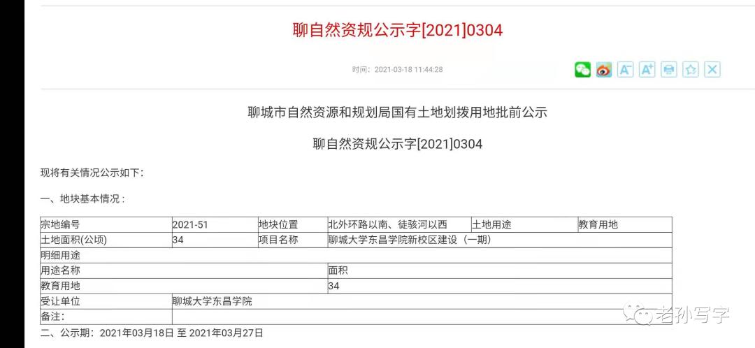 之前,市自然资源和规划局曾进行批前公示。公示显示,聊城市将在徒骇河和北外环交叉处,为聊城大学东昌学院划出教育用地1000亩左右。目前这项工作正在紧张推进中。一期工程34亩已经公示,预计今年动工。