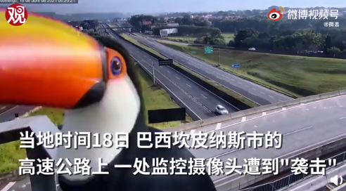 中国小康网讯 当地时间18日,巴西坎皮纳斯市的高速公路上,一台摄像头遭到"袭击"——两只巨嘴鸟轮流出现在镜头前试图吃下该摄像头,"受害者"拍下了全过程。引发网友热议。