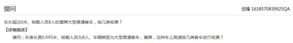 问:车长超过6米、核载人员8人的黄牌大型普通客车,按几类收费?