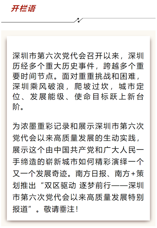 深圳市第六次党代会召开以来的几年间,两地在教育、医疗、交通、科技、金融、产业、城区等各领域深度融合,开创合作共赢新局面,为粤港澳大湾区和深圳先行示范区建设注入强劲动力。