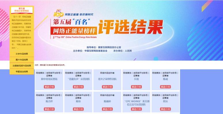 第五届“五个一百”网络正能量精品评选活动结果发布