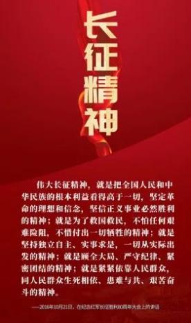 长征精神,红色革命精神之一 ,是中国共产党在二万五千里长征中创造的革命精神。红军指战员在长征途中表现出对革命理想和事业无比的忠诚、坚定的信念,表现出不怕牺牲、敢于胜利的无产阶级革命乐观主义精神,表现出顾全大局、严守纪律、亲密团结的高尚品德,创造了伟大的长征精神。