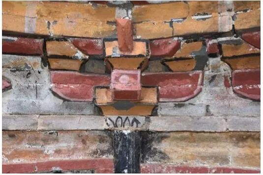 戴庄村金代砖墓位于阳曲县泥屯镇戴庄村西南100米处。2019年12月到2020年1月,经国家文物局批准,由山西省考古研究院与太原市文物考古研究所对其进行了抢救性发掘。据介绍,戴庄村金代砖墓为仿木结构砖雕彩绘砖室墓,坐北朝南,方向180°,由墓道、甬道、墓室3部分组成。墓道为竖穴式,平面呈梯形,靠近南端处东西两壁各有3排脚窝,甬道顶部为券拱形。墓室与甬道之间以大块砾石封门,共计两道。墓室平面呈八边形,东西长2.44米、南北宽2.43米、残高2.96米,墓顶为圆形券顶。墓室内铺满方砖,共计4层,靠近甬道处以条砖收边,以此作为棺床。墓室四壁雕刻有精美的仿木结构建筑,主要有立柱、斗栱、阑额、屋檐等。其中立柱有八根,均为八棱柱,柱头上砌有八个转角铺作,转角铺作间还有补间铺作。除此之外,北壁、西北壁、东北壁雕有浅龛,上雕帐幔,内设小木作,如桌椅、屏风、供桌等。