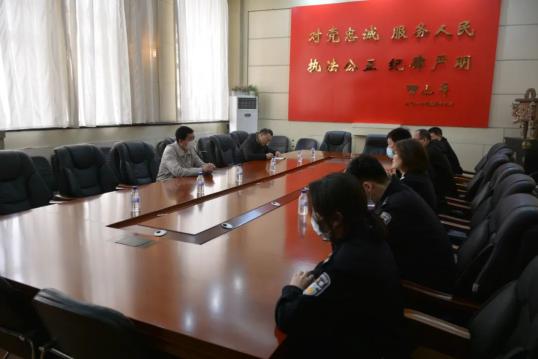 近日,省政法队伍教育整顿第九指导组公安司法行政小组组长王海田带队分别深入交警支队、出入境管理支队检查指导教育整顿工作。
