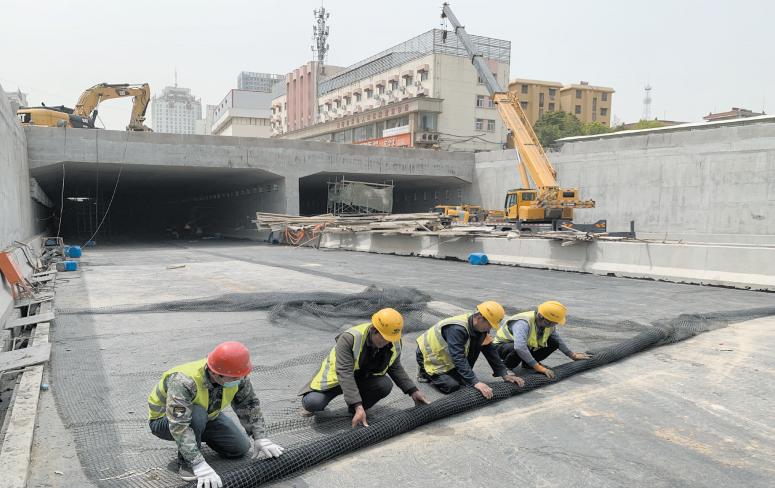 当日上午,记者在施工现场看到,施工人员正按部就班紧张有序工作。备受市民关注的车站路下穿新华路项目已现雏形,下穿隧道已全线贯通。