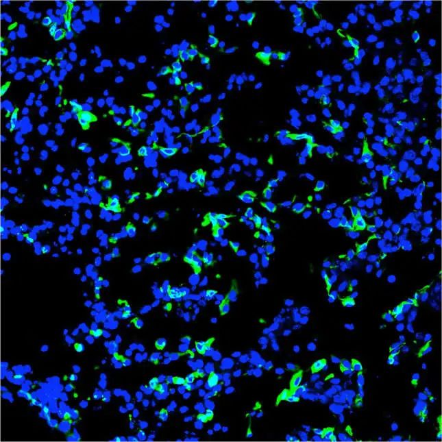 绿色为人类细胞,蓝色为猪细胞