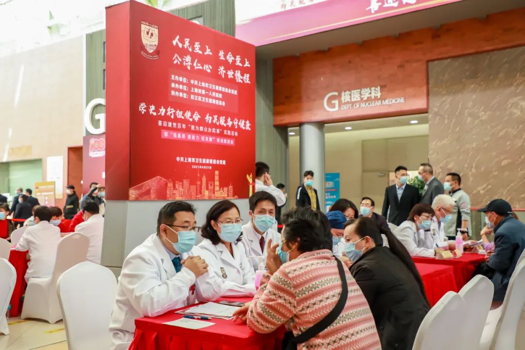 一场百人义诊也是活动一大亮点。三区十地同步,线上线下联动,来自上海市第一人民医院南部(松江)、北部(虹口)两个院区、上海市第一人民医院嘉定分院、松江区中心医院,以及方松、岳阳、中山、永丰、车墩等5个社区卫生服务中心共计100位医务人员,分别在8个义诊点同步启动大型义诊服务。同时,第一人民医院专家以“互联网医院”形式为全市患者提供线上健康咨询服务。