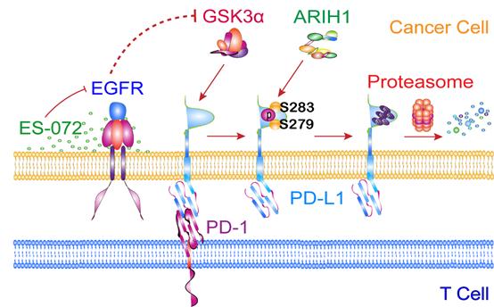 示意图:EGFR-GSK3α-ARIH1信号通路调控PD-L1的蛋白酶体降解
