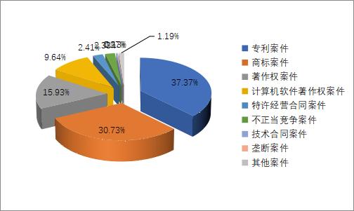 2020年,上海知识产权法院共受理各类知识产权案件5279件,审结4789件,同比分别增长111.5%和122.23%。在受理的案件中,民事一审案件4389件,民事二审案件863件,行政一审案件1件,诉前保全案件14件,其他案件12件。