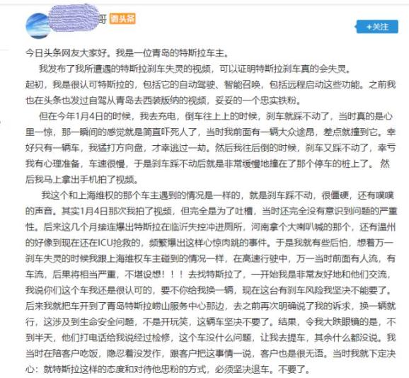 原标题:《青岛特斯拉车主:我的车一天两次刹车失灵!半岛全媒体记者独家对话,车主:“我惹不起还躲不起吗?”》