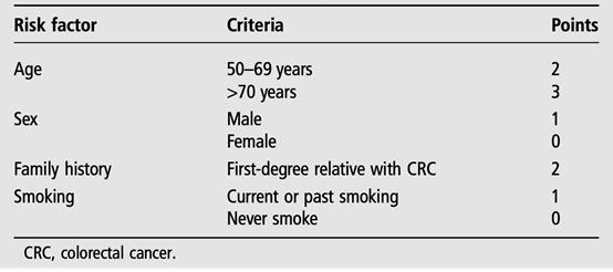 此外,亚太工作组也对大肠癌的风险因素进行了评分[1],此风险评分对于鉴别结直肠癌肿瘤的高危人群非常有用。