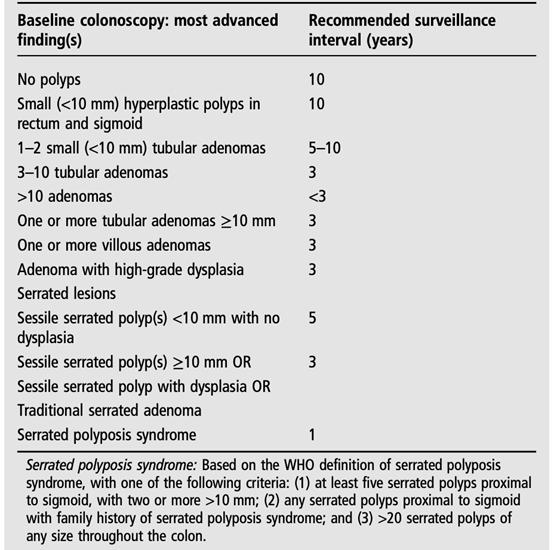 表3:美国结直肠癌多协会特别工作组的推荐意见