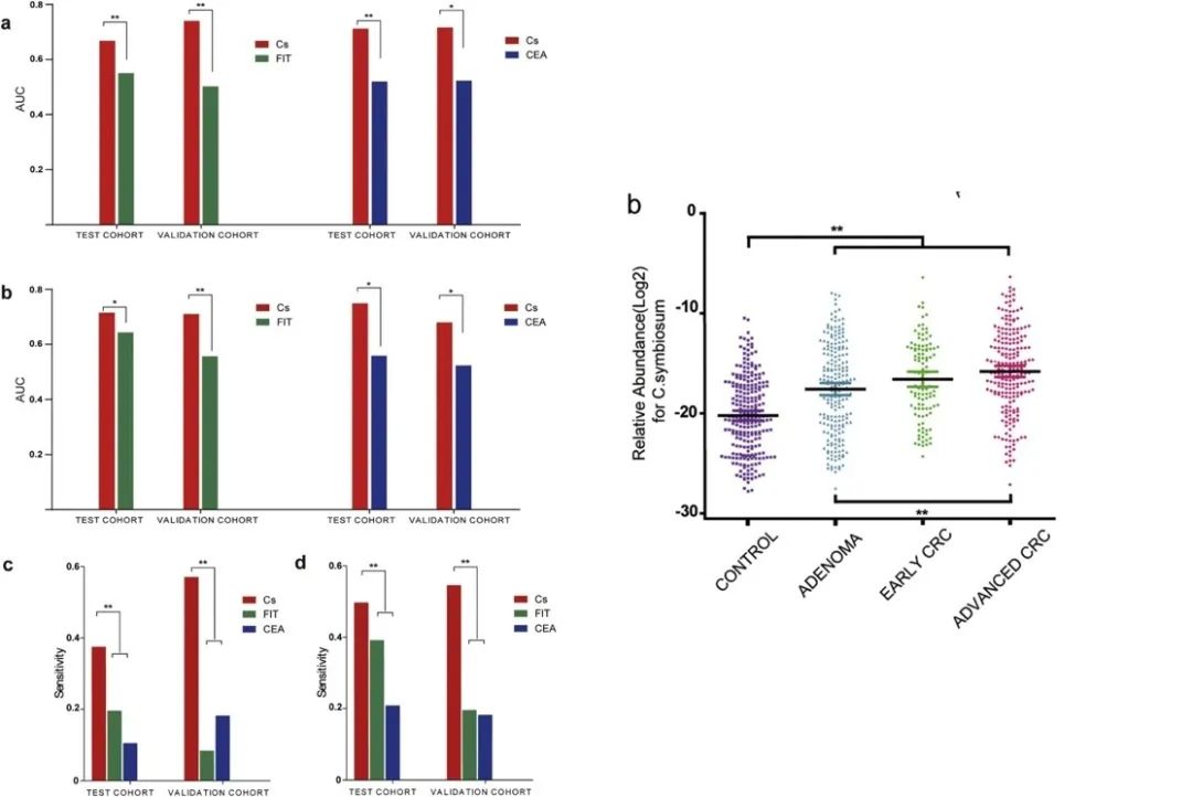 [5]Xie,Y.H.,et al.,Fecal Clostridium symbiosum for Noninvasive Detection of Early and Advanced Colorectal Cancer:Test and Validation Studies.EBioMedicine,2017.25:p.32-40.