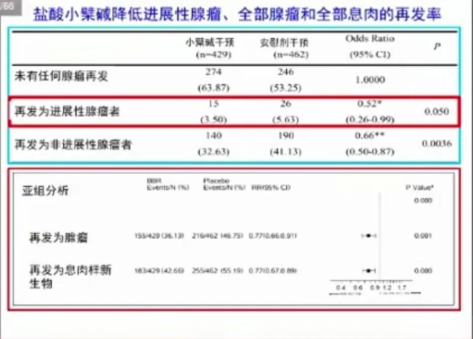 近期发表于Lancet消化子刊的一项多中心、随机、双盲、安慰剂对照的研究结果表明:盐酸小檗碱可以预防结直肠腺瘤摘除后的再发[10]。