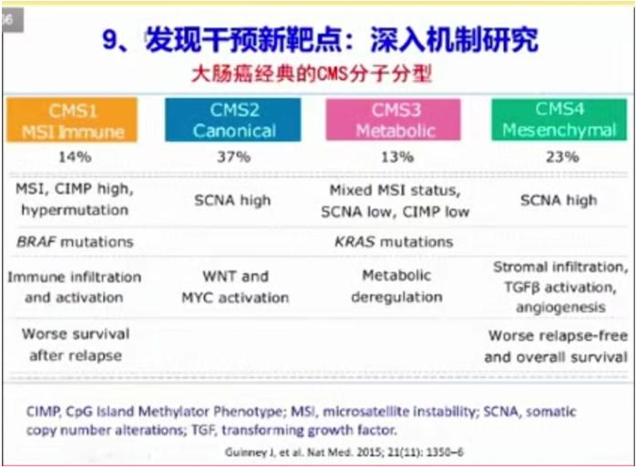 大肠癌的CMS分子分型有四型,不同的分型与大肠癌的发生通路、病变位置及后期治疗均有关,但是具体的关系仍然不是很明确,这就为后续的研究留下了很大的空间。