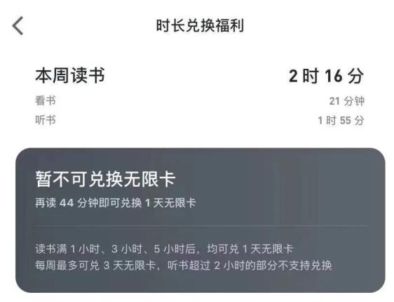 对于忠实读者而言,变化体现在了福利场中的无限卡里。据黄涛回忆,他以前每周组队抽奖有时候抽到30天,但现在全是两天。赵帅也表达了相同的感受,他说,2019年微信读书给无限卡的活动很多,尤其是答题,那时一次就能得六七天的无限卡。