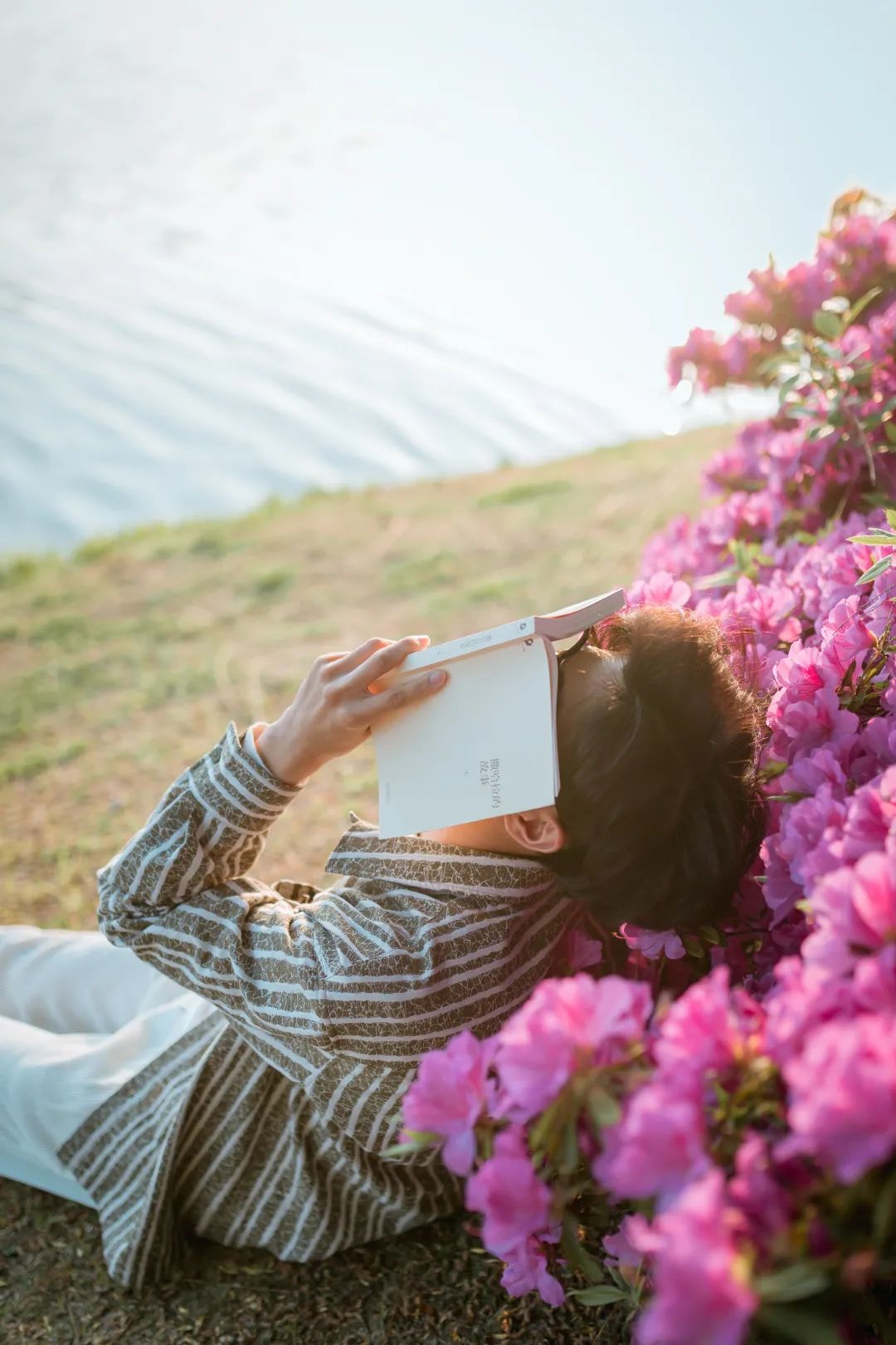 或是捧于掌心,或是掩面遮阳,书的出现给了照片更浪漫的意境。春天的温柔和惬意从身下蔓延到指尖,阳光细细密密的穿过发梢,温暖每一幕出现的景色。