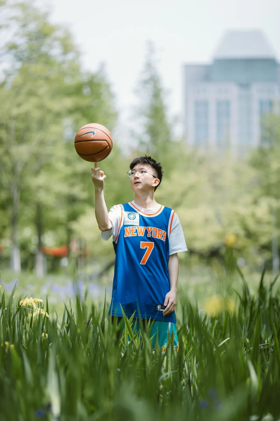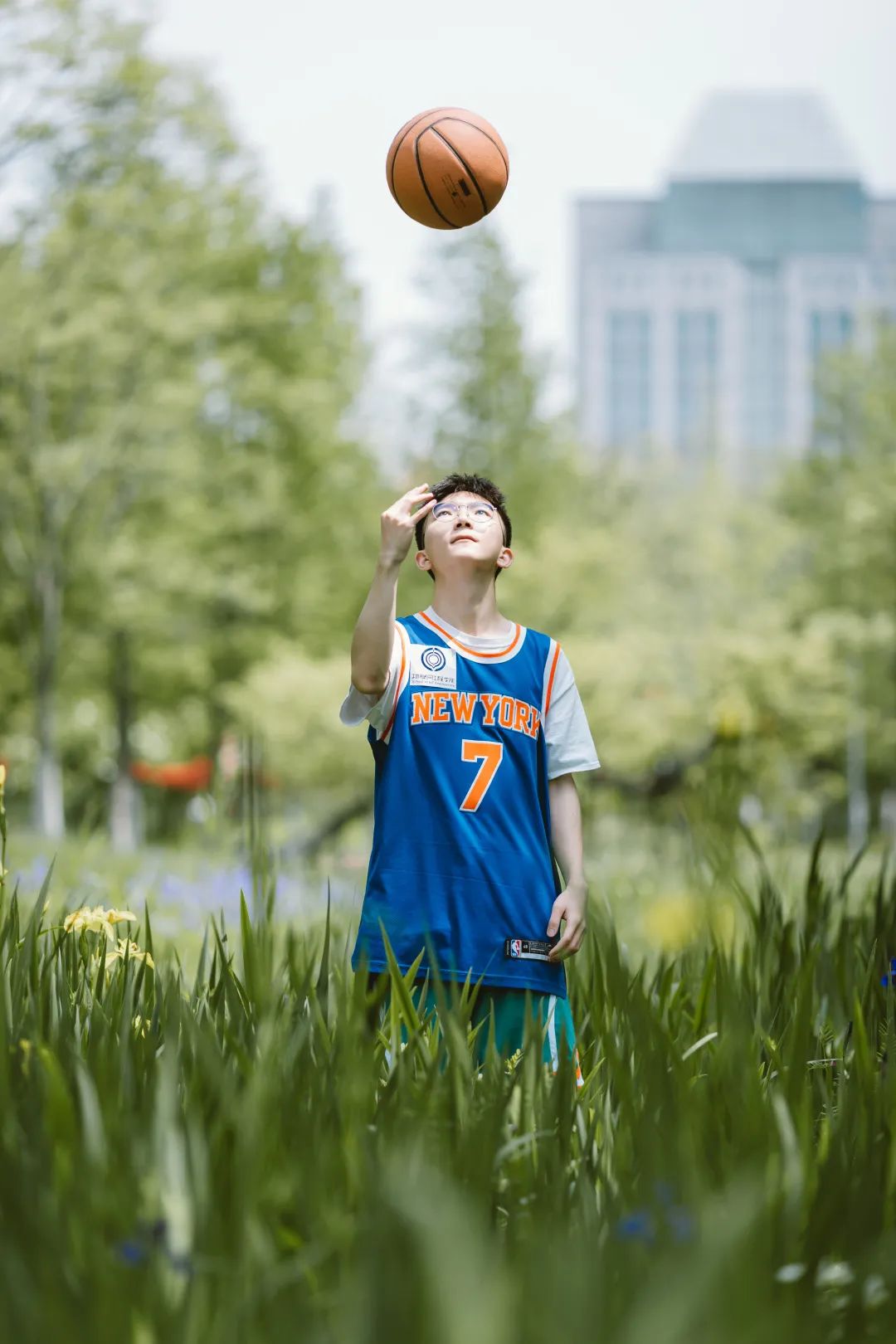 想要有阳光运动的形象的话,穿着篮球服来拍一张好了。草木茂盛的春天里,抱着篮球对镜头展现一个微笑,于是这里被记录下了朝气蓬勃的风景,还有正当风华的你。