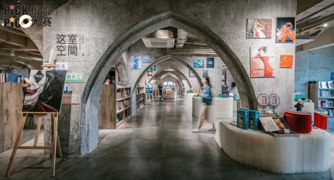独特的空间设计,标志性的「旋转楼梯」「洞穴书店」「拱」这些元素,以及拍摄「不设限」的开放理念,对摄影师可谓极度友好…