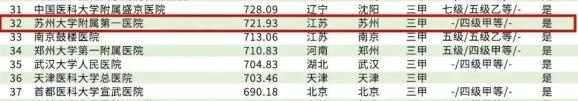 苏大附一院位列全国第32名
