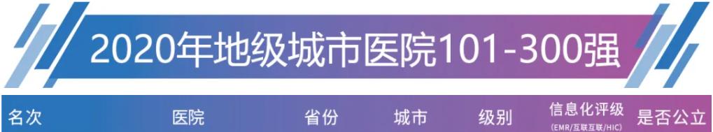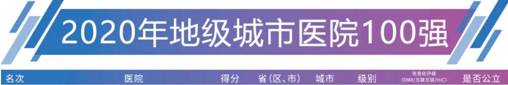 在2020届地级城市医院100强排行榜中
