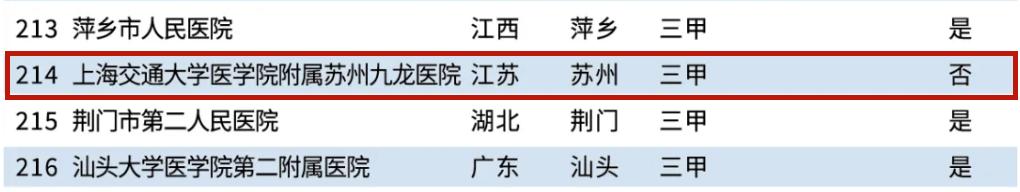 苏州九龙医院入围“地级医院300强”
