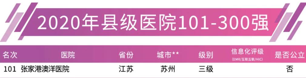 张家港澳洋医院位列第101