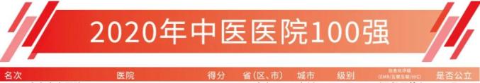 中医医院的百强榜单中