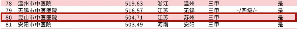昆山市中医医院位列第80名