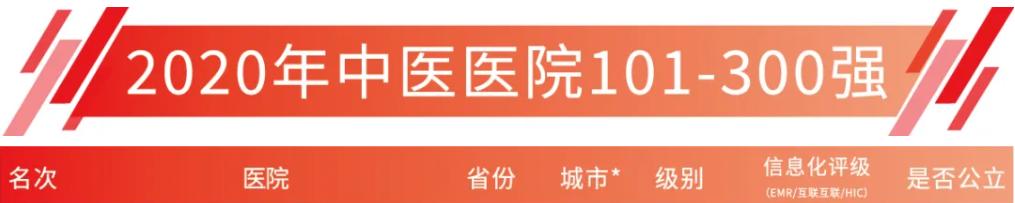 “中医医院300强”名单中