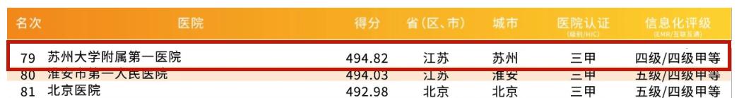苏大附一院位列79名