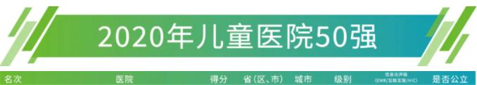 2020年儿童医院50强