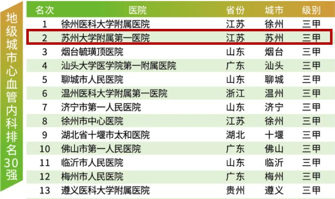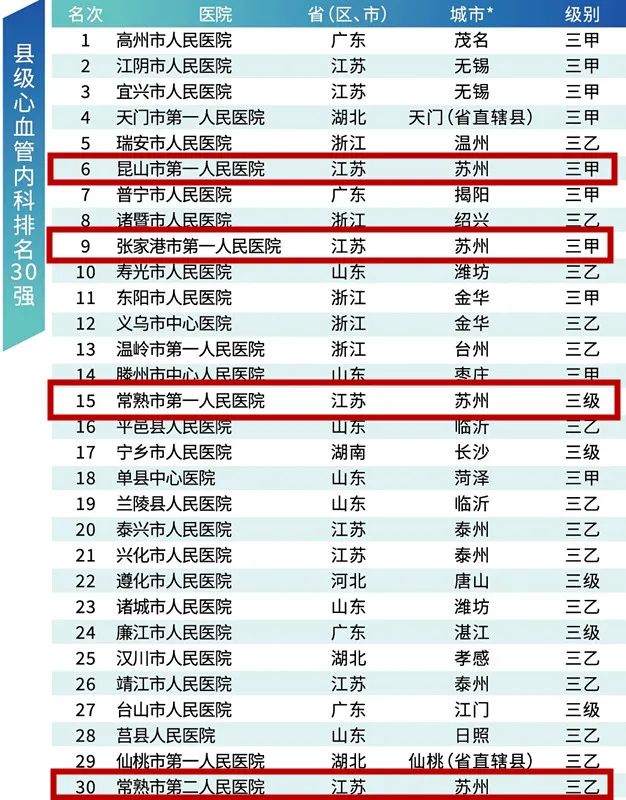 县级心血管内科排名30强