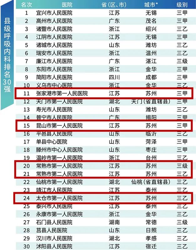 县级呼吸内科排名30强