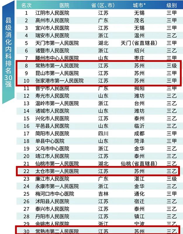县级消化内科排名30强