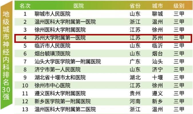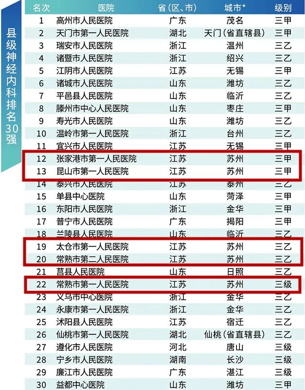 县级神经内科排名30强