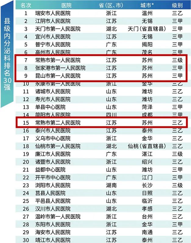 县级内分泌科排名30强
