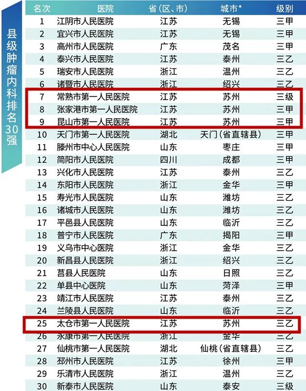 县级肿瘤内科排名30强
