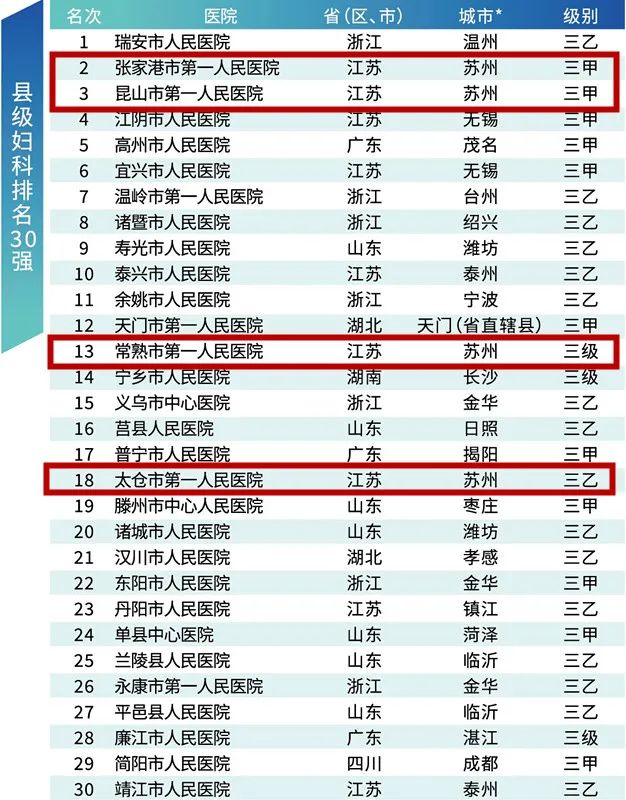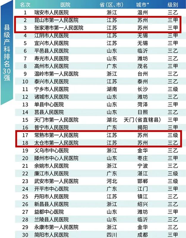 县级产科排名30强