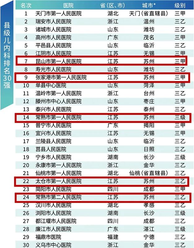 县级儿内科排名30强
