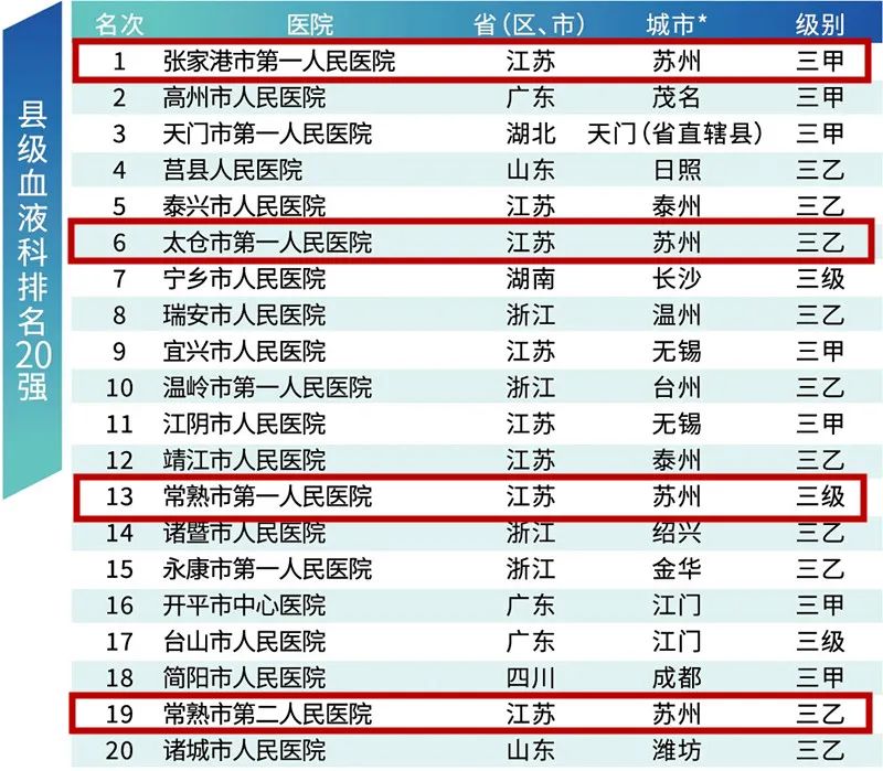 县级血液科排名20强