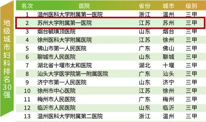 县级妇科排名30强
